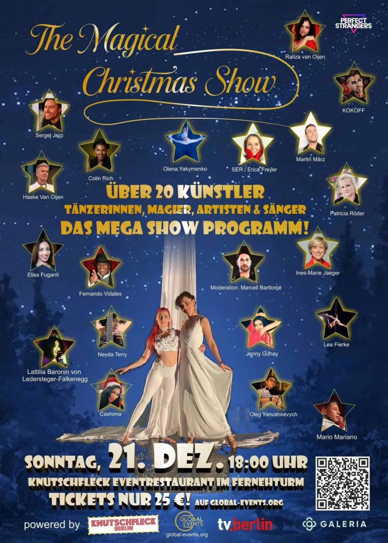 Die magical Christmas Show ist ein Dankeschön von vielen Künstlern für die Aufmerksamkeit, die Sie bisher Ihnen geschenkt haben. Genießen sie diese außergewöhnliche Show die sowohl ein künstlerisches als auch ein emotionelles Highlight des Jahres darstellt. Lassen Sie sich dieses Event nicht entgehen.